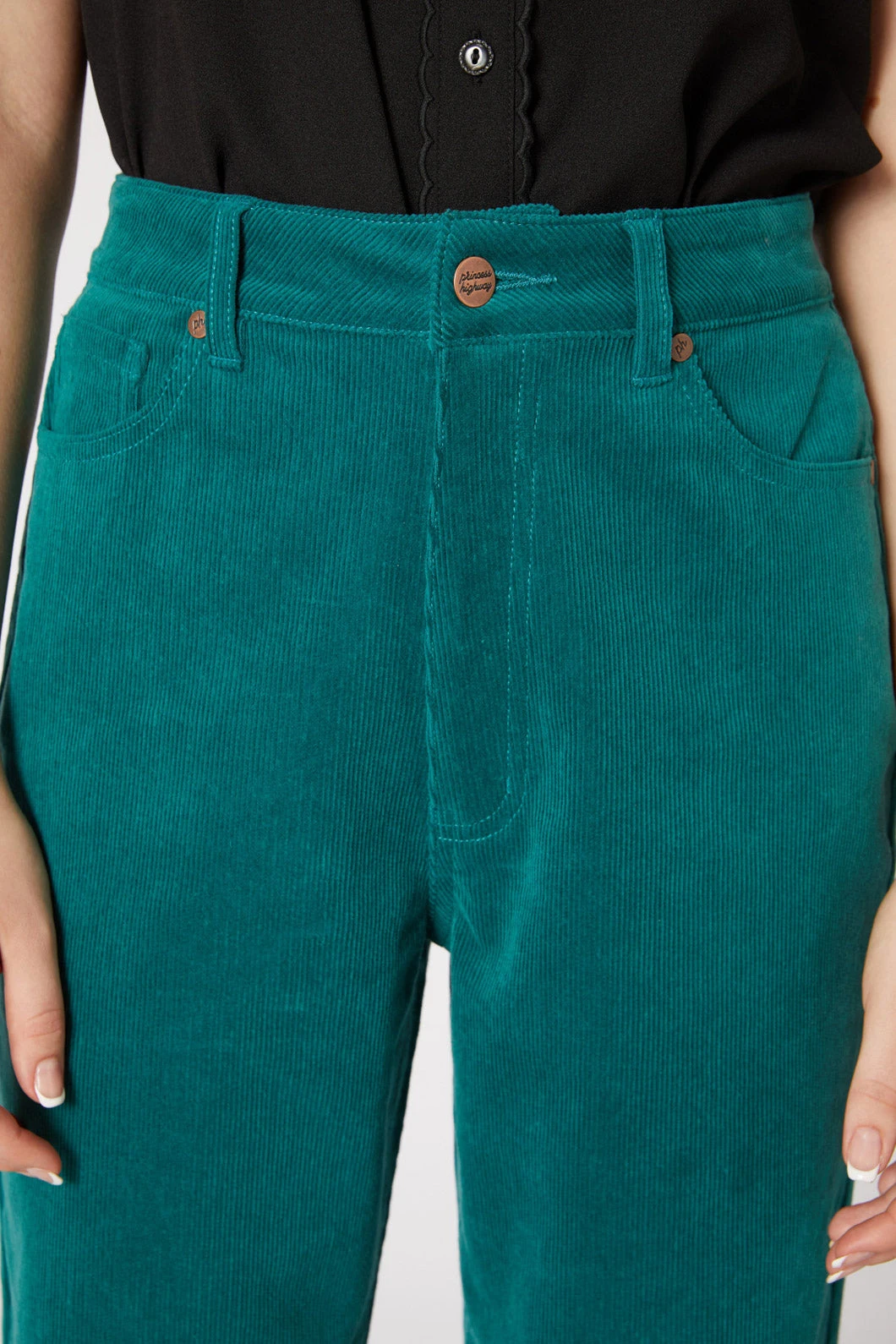 Featuring handy pockets for practicality and antique brass zippers and buttons for a vintage touch, these pants are as functional as they are stylish. Available in vibrant teal and magenta, they bring a pop of color to your wardrobe.