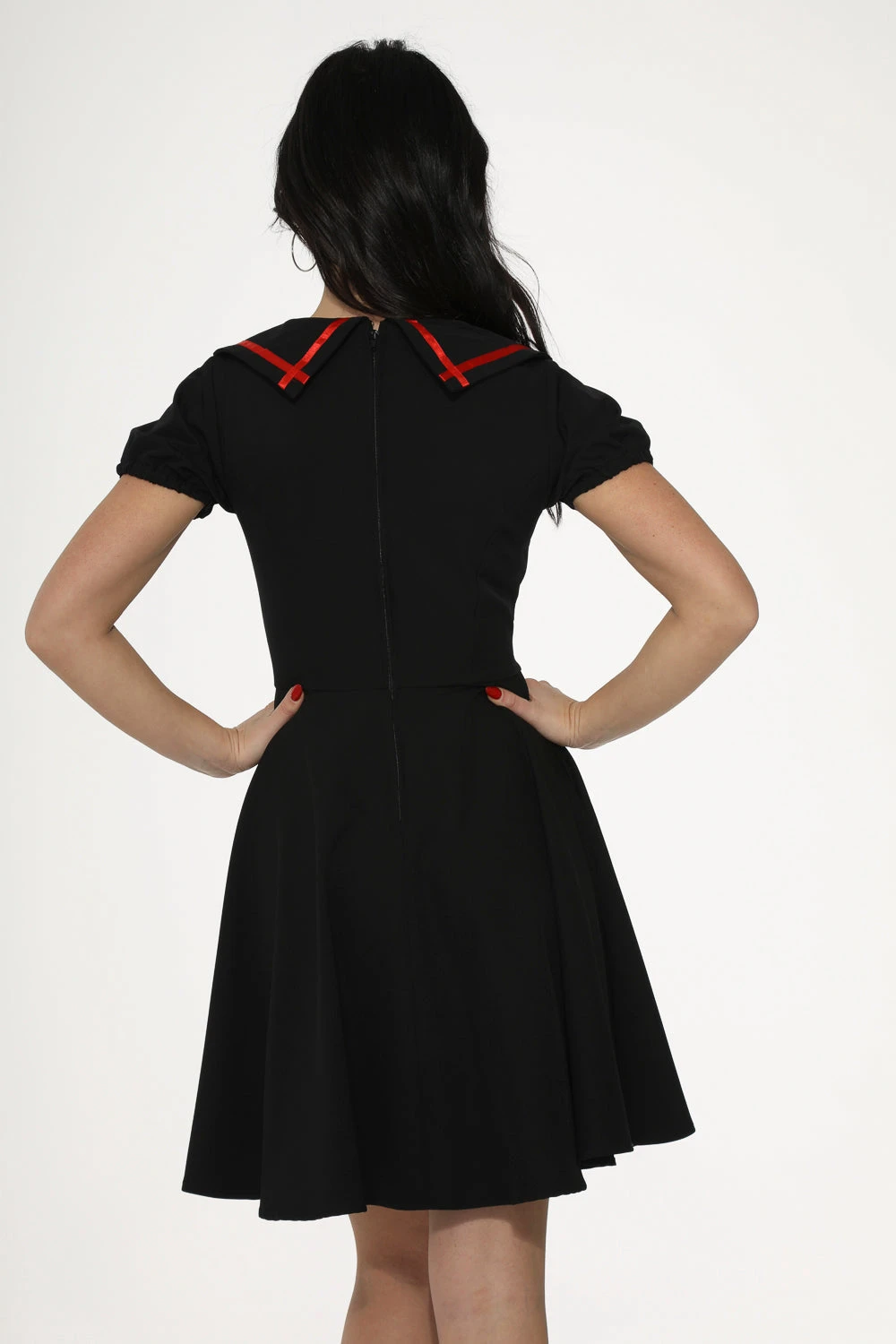 Dark romance meets vintage flair in the Black & Red Trim Gothic Swing Dress by Orchid Bloom. Featuring a striking red trim against a deep black base, this swing silhouette captures gothic elegance with a touch of retro charm—perfect for moody evenings, alternative styling, or standout everyday wear.