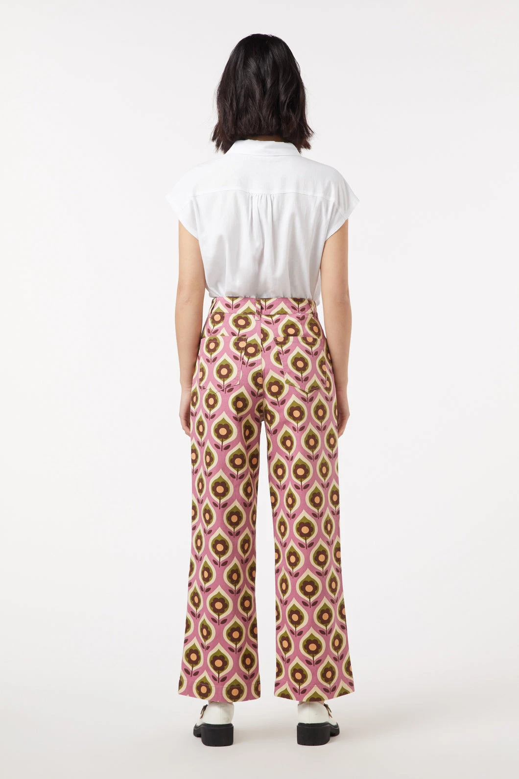 Step out and strut into a throwback vibe with the Mary Jane Jean, where retro chic meets modern swank. Gone are the days of choosing between style and comfort—this daisy wallpaper print is your ticket to nailing that super cute ’60s moment, without having to raid your grandma’s closet. Crafted from soft cotton drill that’s kind to your skin and loves a good stretch, these jeans are all about making you look and feel groovy. The high-waisted rise is a nod to the era of peace and love, offering a silhouette that’s both flattering and forgiving. And let’s talk about those legs – wide enough to make a statement, yet tailored to follow your every move, finishing elegantly at the ankle. Whether you’re channeling your inner flower child or simply looking to sprinkle a little vintage magic into your day-to-day, the Mary Jane Jean is your wardrobe’s new best friend.