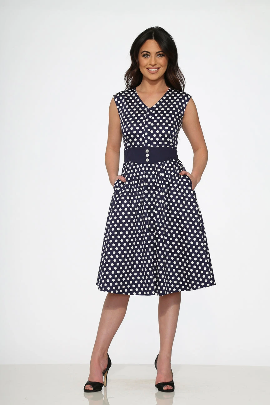 Classic and endlessly flattering, the Navy Blue White Polka Dot Swing Dress by Orchid Bloom brings vintage charm to modern styling. With crisp white polka dots on a deep navy base, this swing silhouette is perfect for everything from daytime outings to evening events.