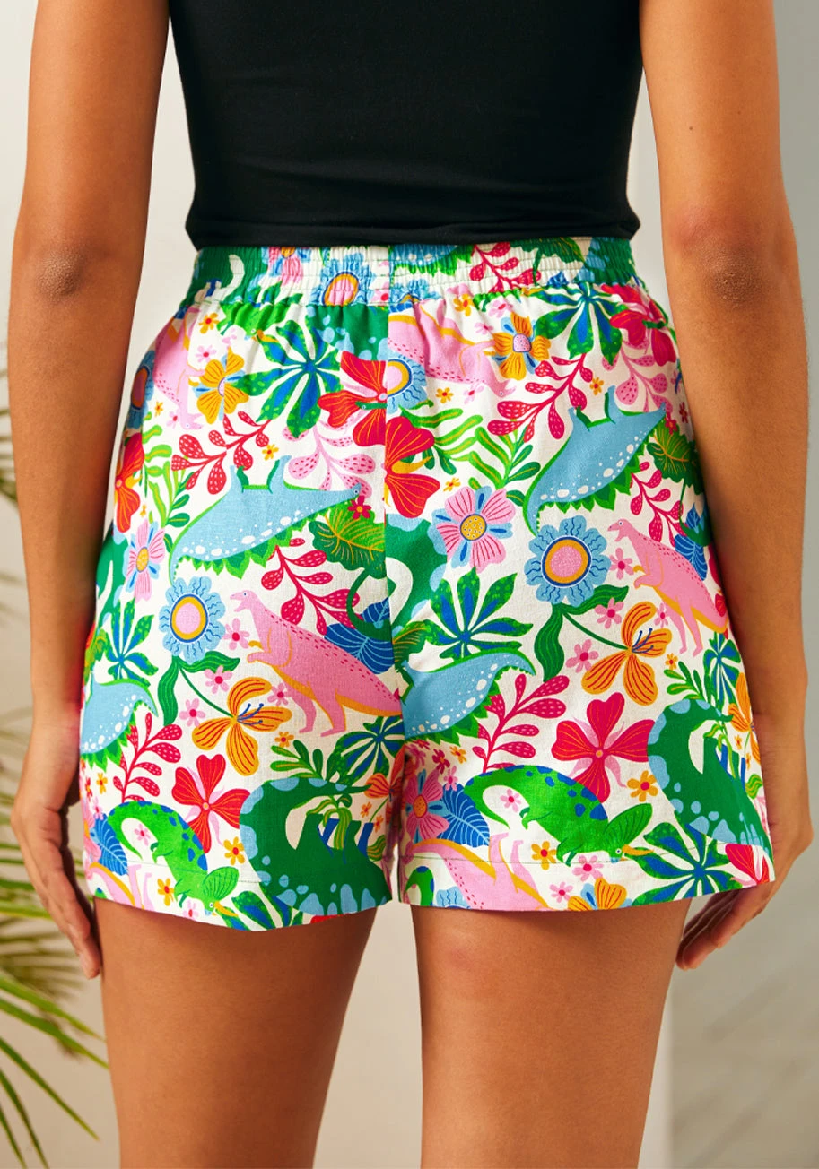 Unearth a treasure trove of style with these dino print shorts by our ModCloth namesake label, crafted from a comfortable blend of linen and cotton. The pleated front adds a touch of vintage grace, while the playful dinosaur motif invites smiles and sparks imagination. Ideal for weekend escapades or adding a dash of fun to casual Fridays.